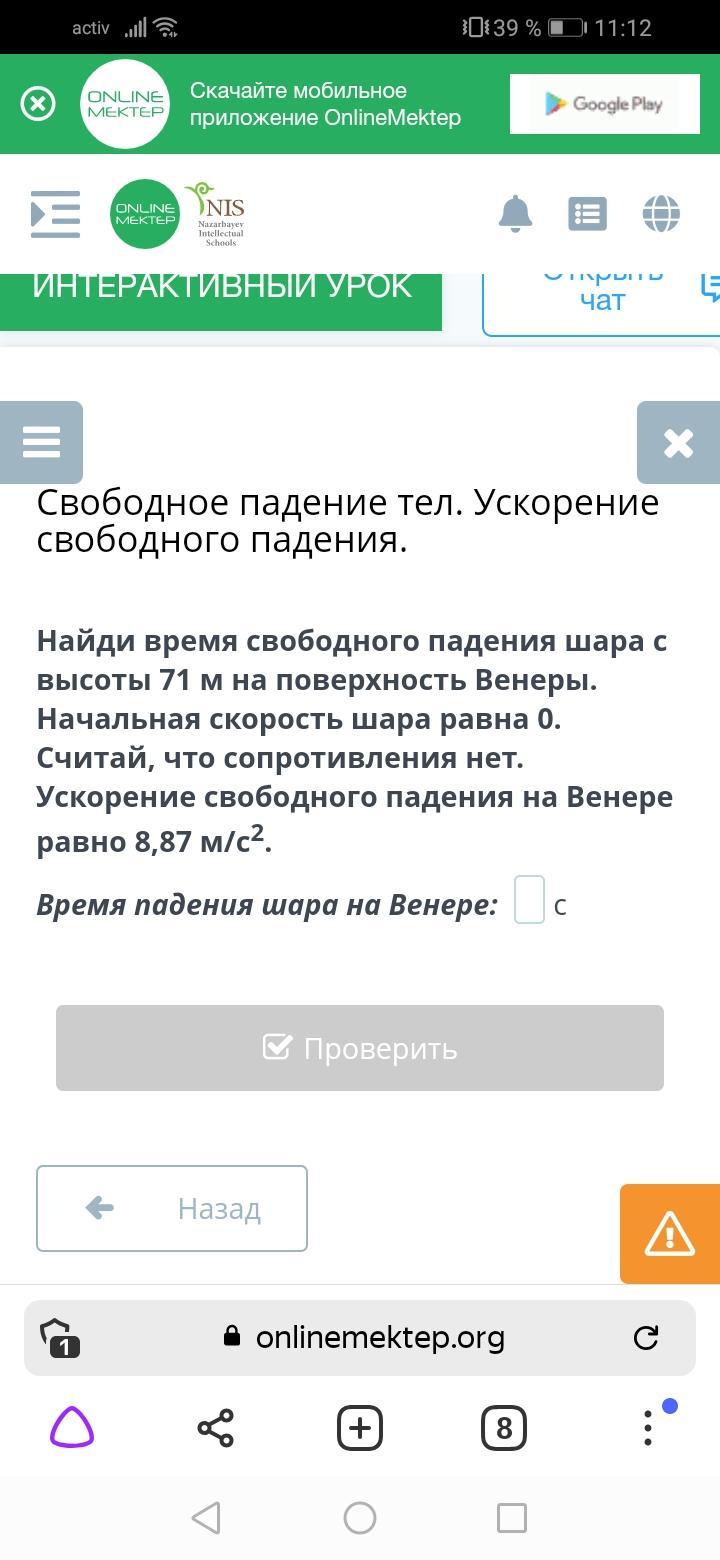 Объяснение: По формуле S = V0*t + a*t²/2, т.к. начальная скорость = 0, а ускорение это g на Венере, то формула приобретает вид