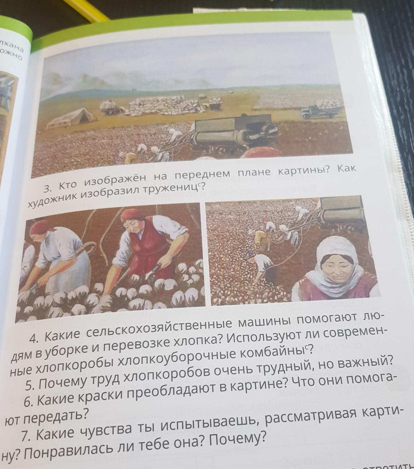 е 5. Составь и запиши текст-рассуждение по картине «Сбор ХЛОП. ка», используя Вопросный и картинный план. ΧΠόπok План 2. Что изображено на дальнем плане картины? Где рас- тёт хлопок? 1. Как называется картина? Кто её написал?