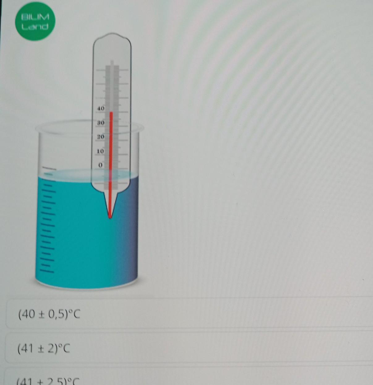 По рисунку определи показания воды и запиши с учетом погрешности прибора. (40 105C (41 + 2)" (4125C (40+ 2)°C