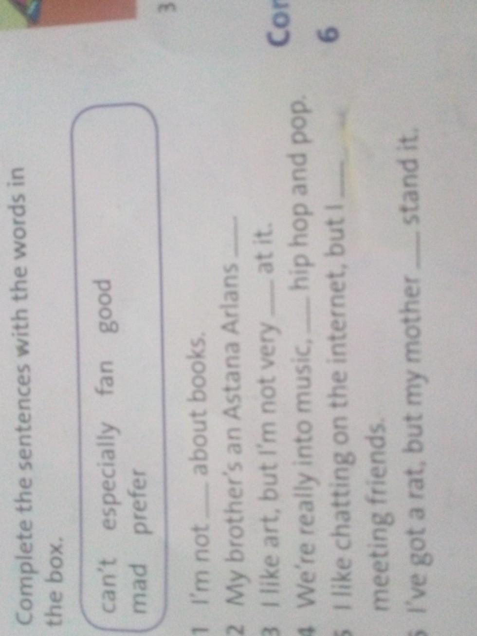 1 mad 2 fan 3 good 4 especially 5prefer 6can't