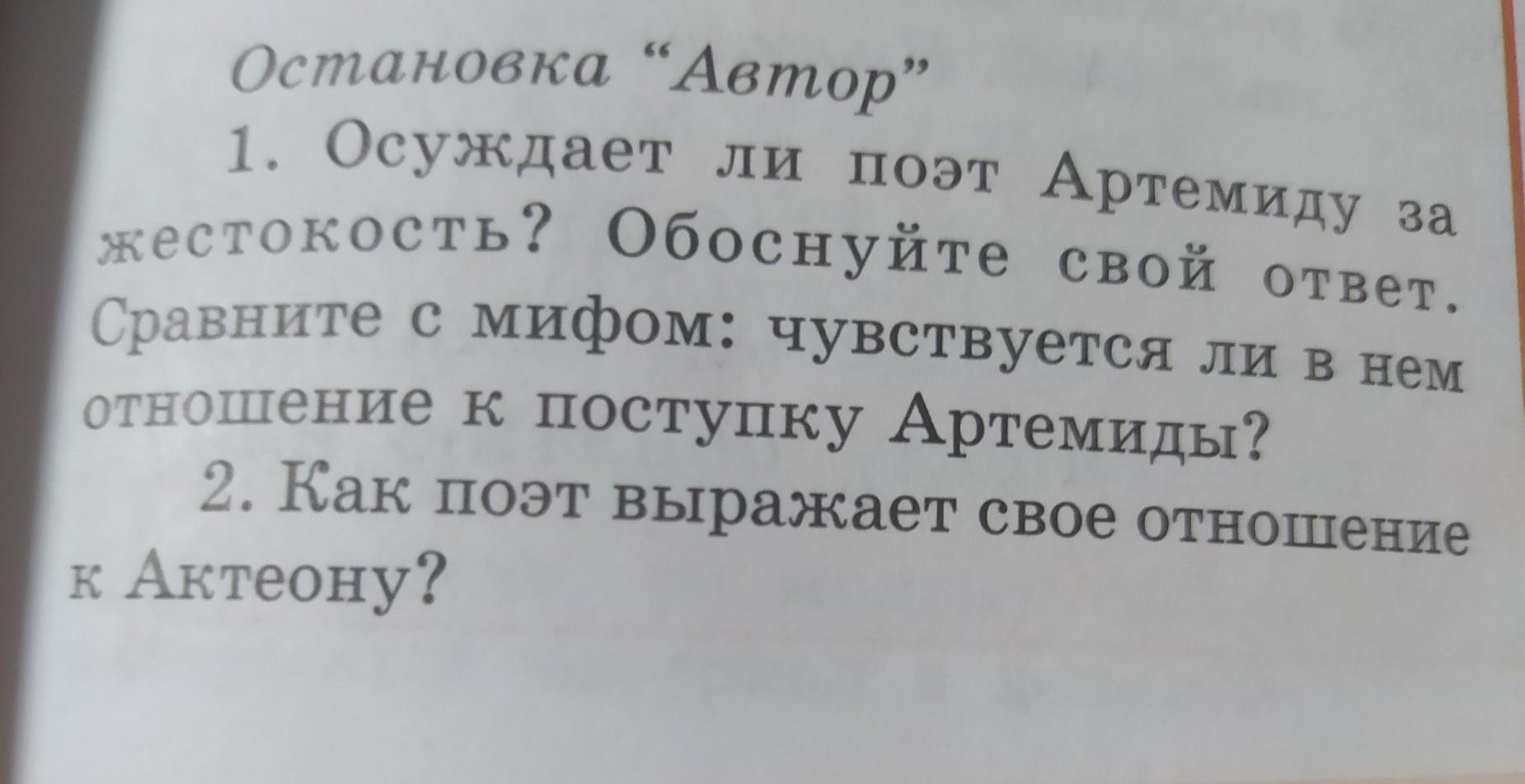 1. Осуждает ли поэт Артемиду за жестокость? обоснуйте свой ответ. Сравните с мифом: чувствуется ли в нем отношение к поступку Артемиды?