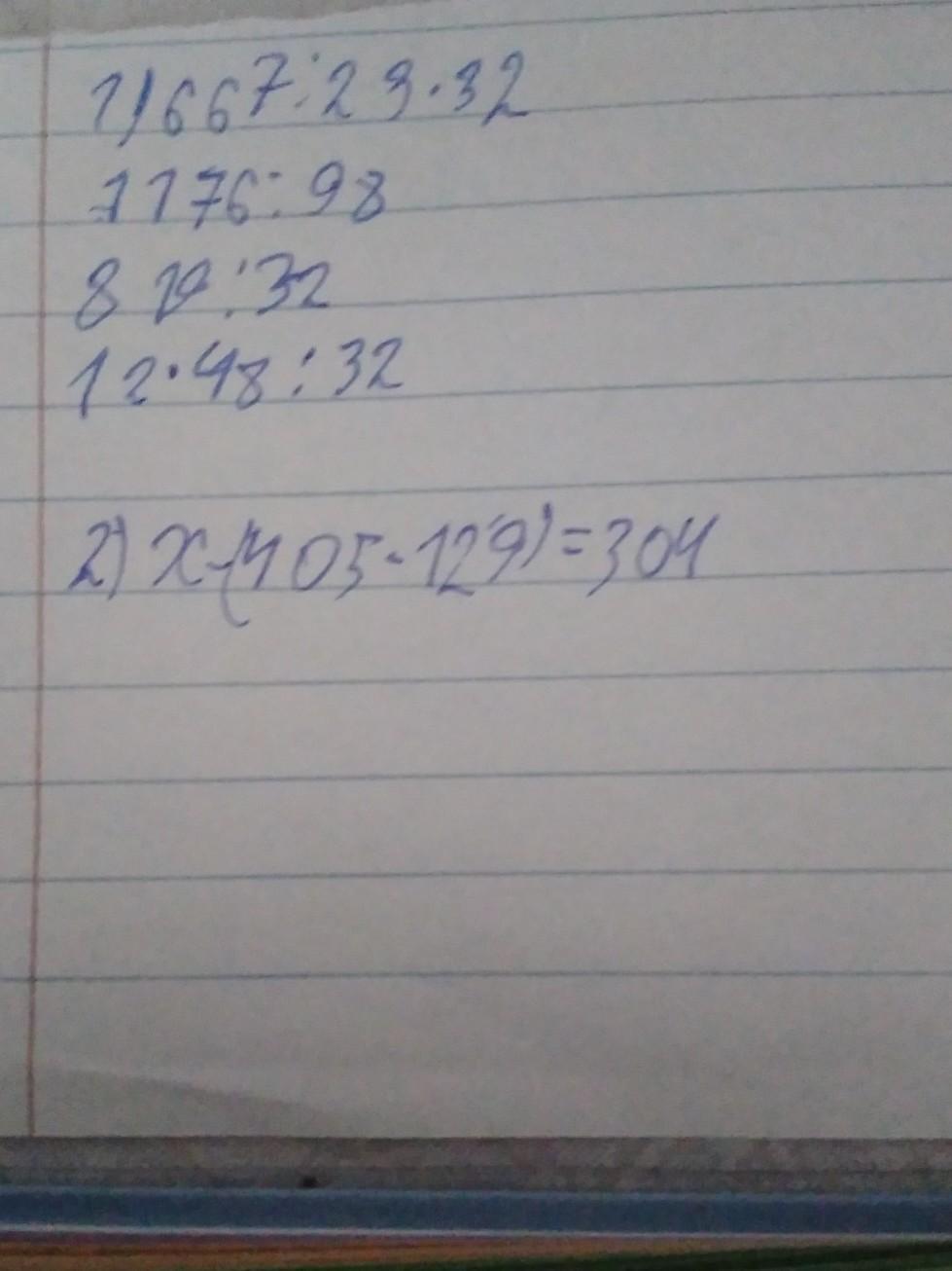 1) 667 / 23 * 32 = 29 * 32 = 928