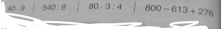40 * 9 = 360 540 : 9 = 60 80*3:4 = 60 800 - 613 + 276 =463