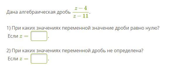 1) Значение дроби равно нулю , когда числитель равен нулю , а знаменатель не равен нулю :