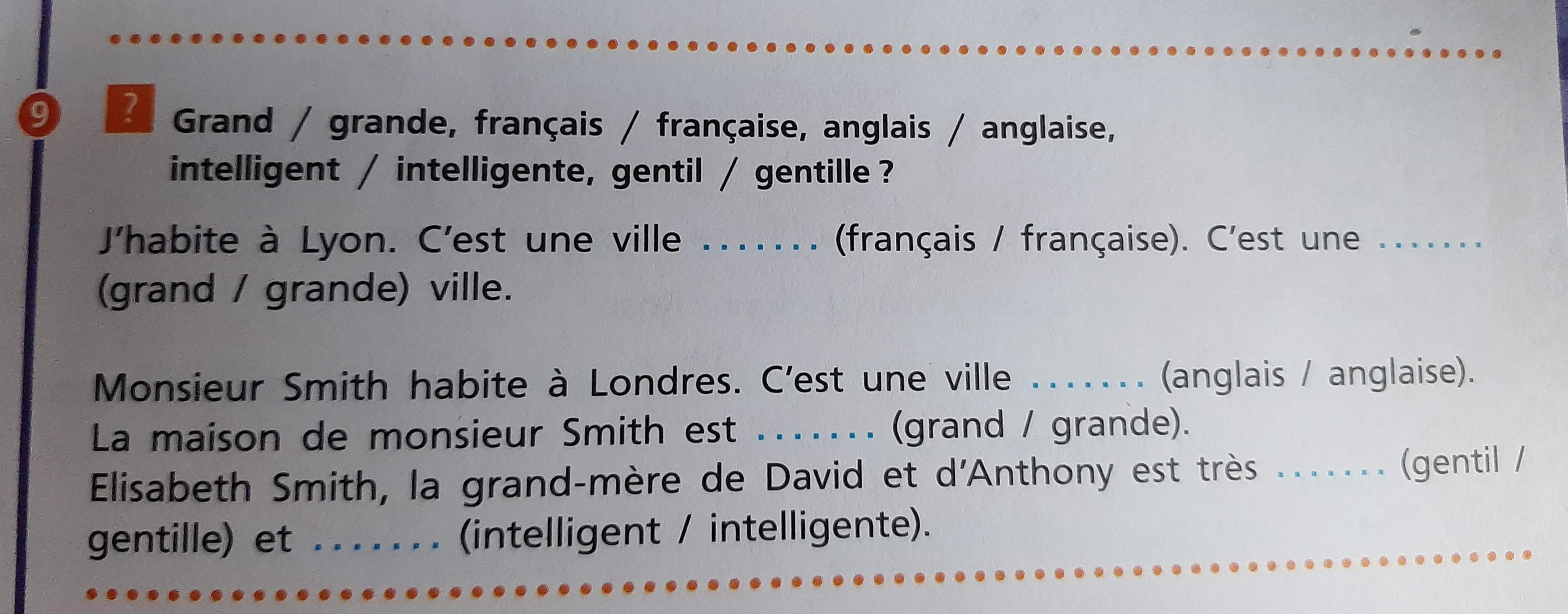 C'est un ville anglaise. LA maidon de monsieur Smith est grand. Elizabeth Smith, la grand-mere de David est tres gentille et intelligente