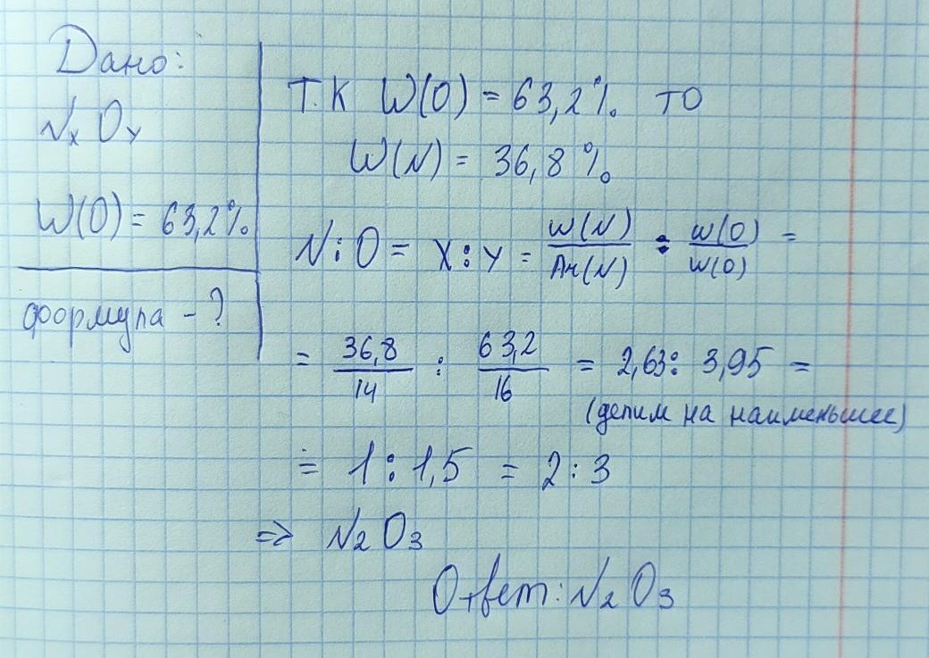 Визначте молекулярну формулу сполуки Нітрогену з Оксигеном, у якій масова частка Оксигену становить 63,2%