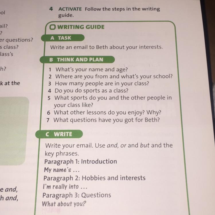 4 ACTIVATE Follow the steps in the writing