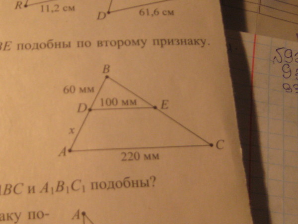 Из подобия треугольников : 220 относится к 100 также , как Х относится к 60 . Из этого следует пропорция Х из которой равен Х= (220*60) / 100 = 132 мм