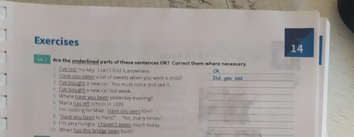 are the underlined parts of these sentences OK? correct them where necessary ex 14.1
