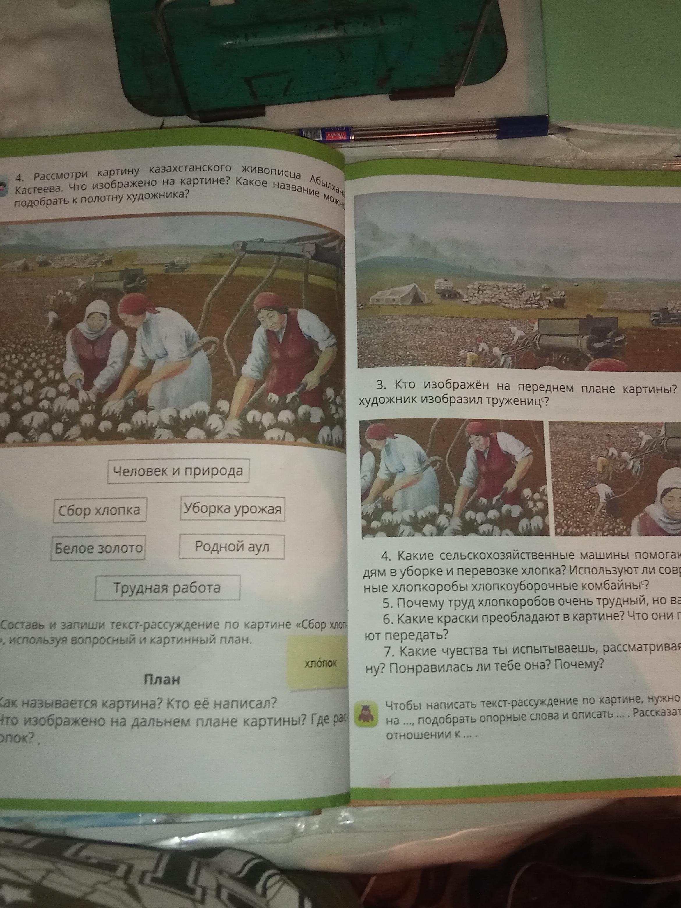Труд хлопкоборов очень трудный потому что хлопок растет на жаре. Это важно потому что из хлопка делают одежду и т. д. .