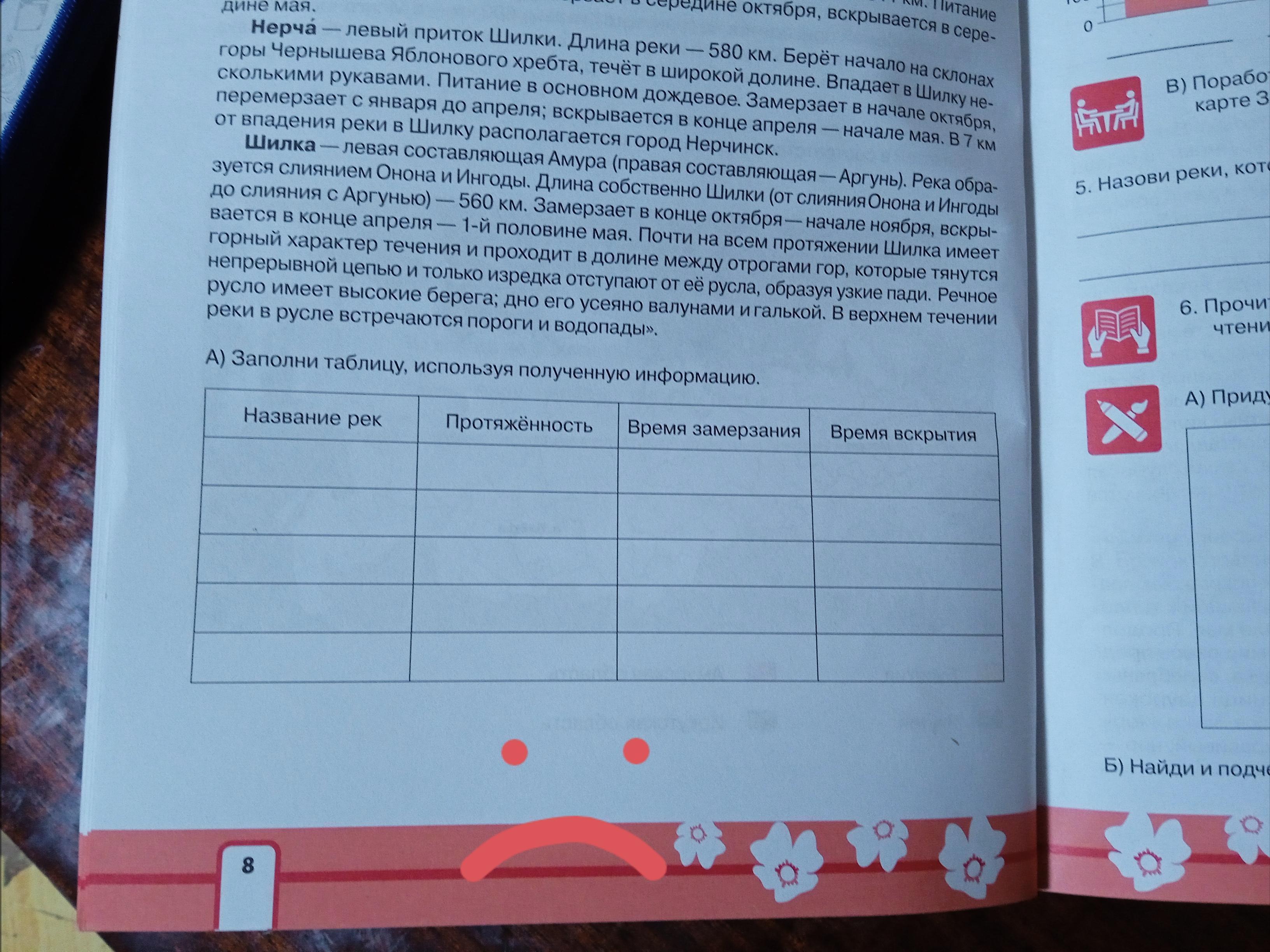 1. Нерча; 2. 580 км; 3. начало октября; 4. конец апреля - начало мая.