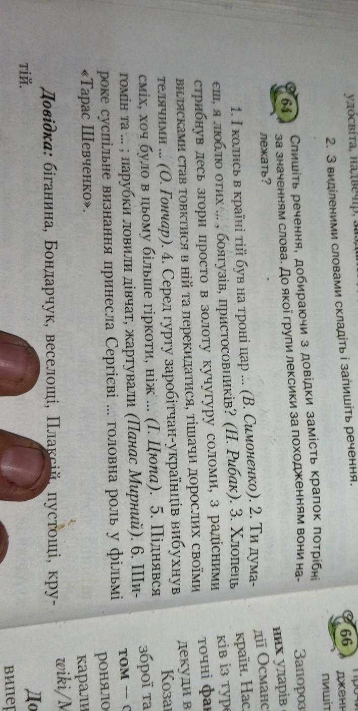 1. І колись в країні тій був на троні пар Плаксій (В. Симоненко). 2. Ти думаеш, я люблю отих крутіїв, боягузів, пристосовників? (Н. Рыбак). 3. Хлопець стрибнув десь згори просто в золоту кучугуру соломи, з радісними вилясками став товктися в ній та перекидатися, тішачи дорослих своїми телячими пустощами (О. Гончар). 4. Серед гурту заробітчан-українців вибухнув сміх, хоч було в цьому більше гіркоти, ніж веселощів (I. Цюпа). 5. Піднявся гомін та біганина; парубки ловили дівчат, жартували (Панас Мирный). 6. Широке суспільне визнання принесла Cepгієві Бондарчуку головна роль у фільмі «Тарас Шевченко».
