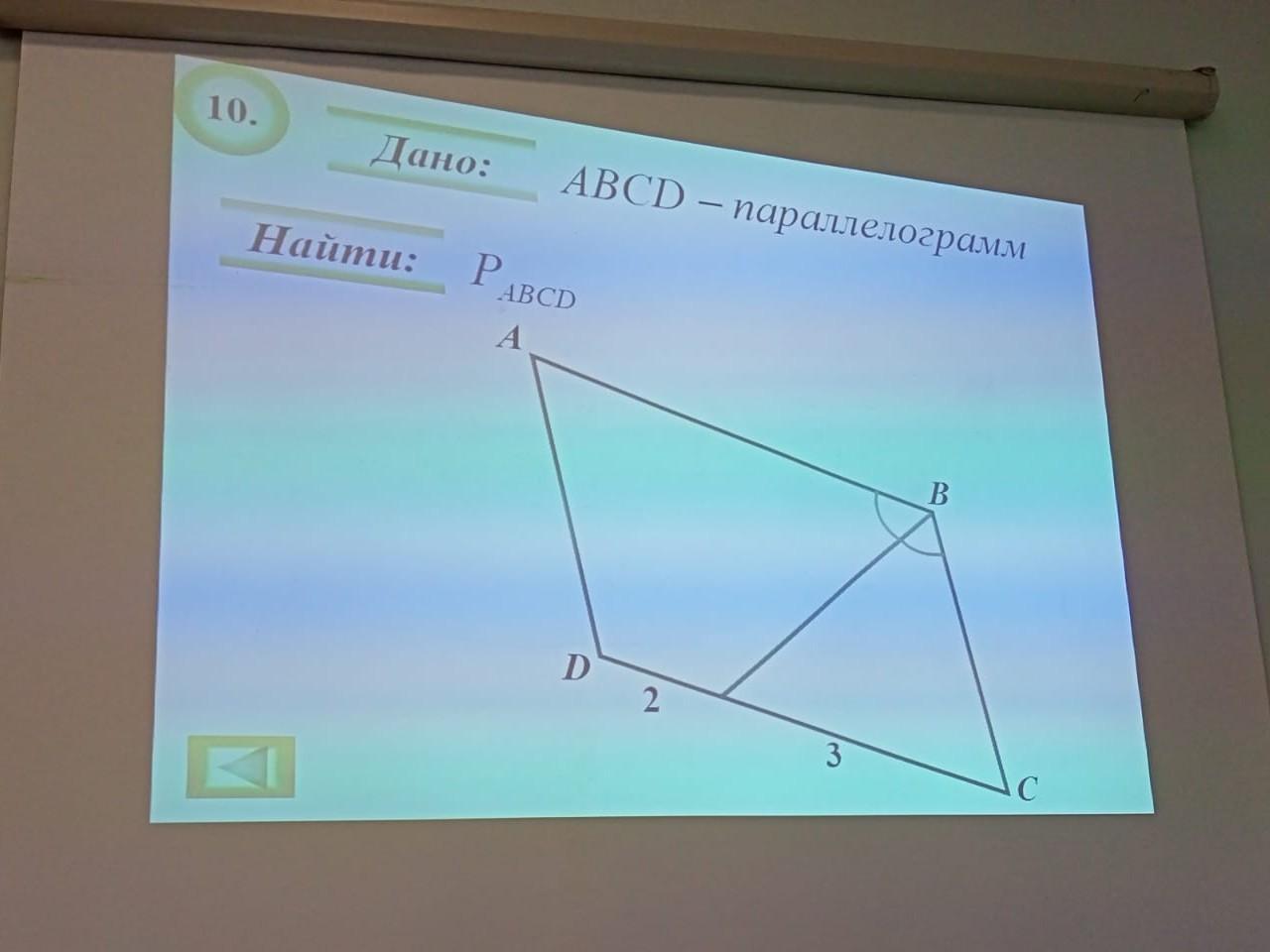 треугольник ОВС равнобедренный т к <АBО=<CОВ как внутренние накрест лежащие углы при параллельных прямых АВ и DC тогда ОС=ВС=3 и AD=BC=3