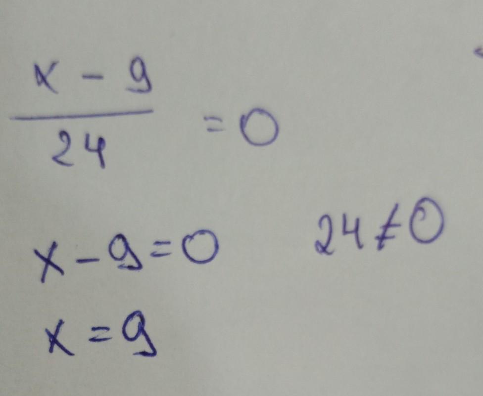 Чтобы найти неизвестное уменьшаемое(х-9), нам нужно разность умножить на вычитаемое(0×24=0).