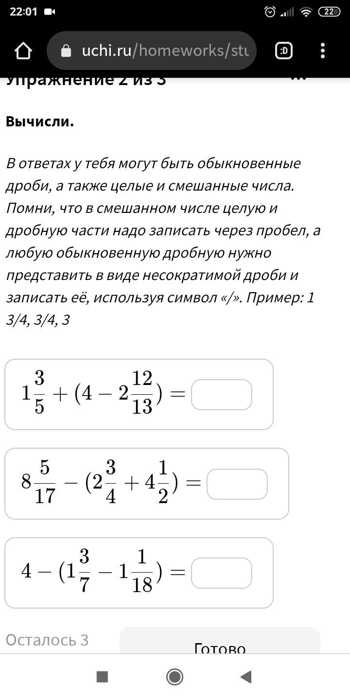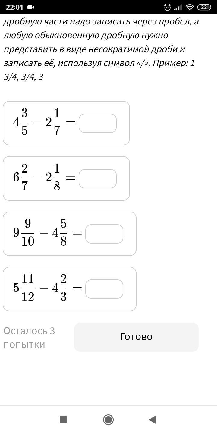 1) 4 3/182 2)8 44/96 3) 10 183/209