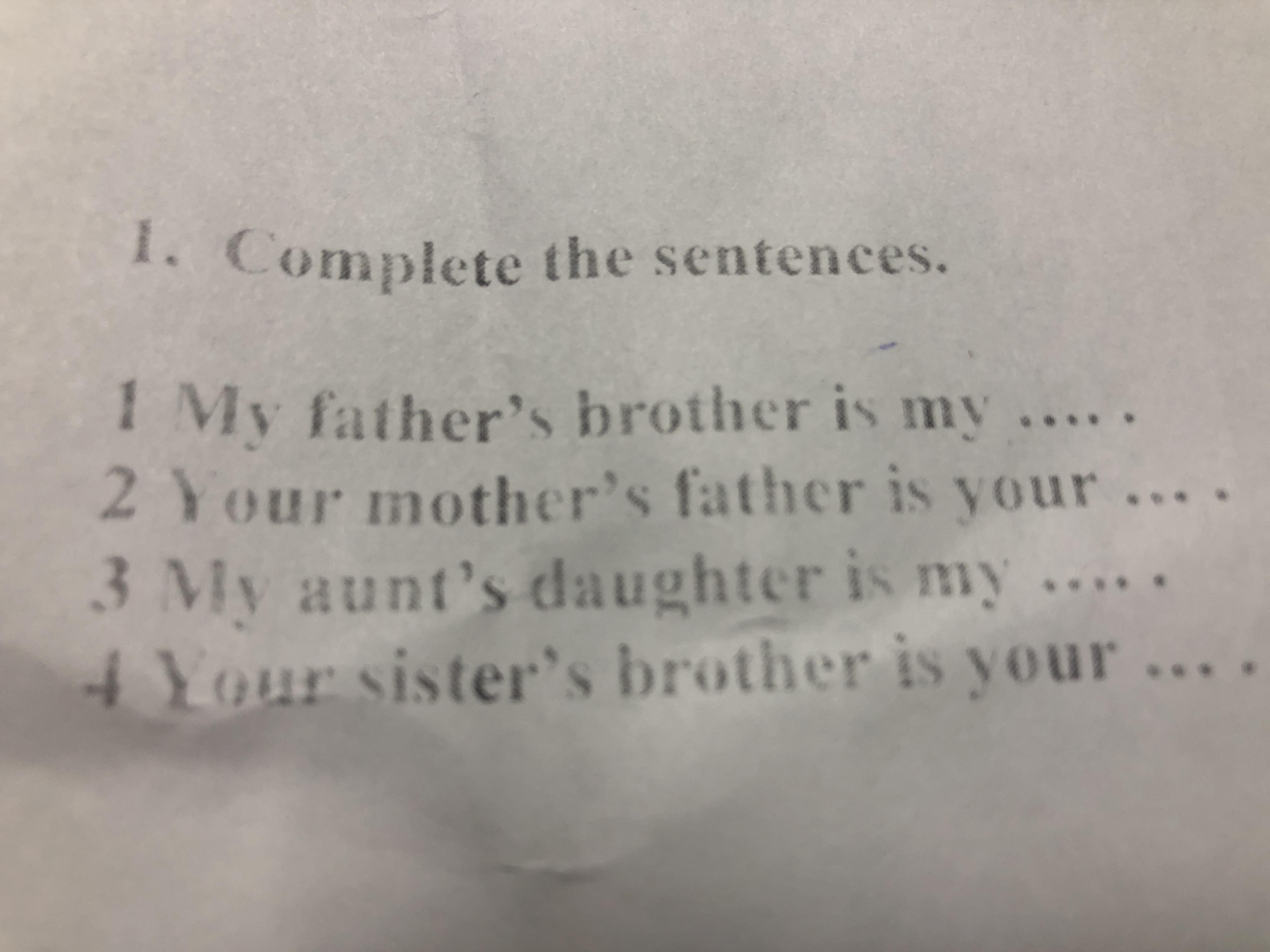 1. uncle, grandfather, cousin, brother(тупое предложение (брат твоей сестры - это...)