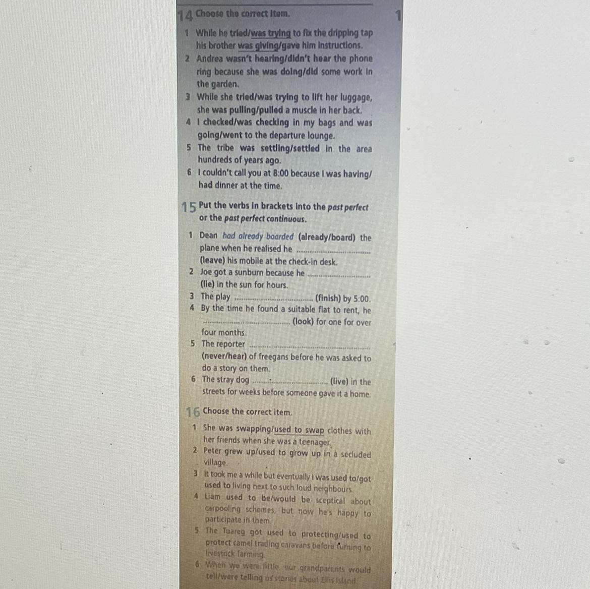 > 1. Dean had already boarded the plane when he realised he has leaved his mobile at the check-in desk