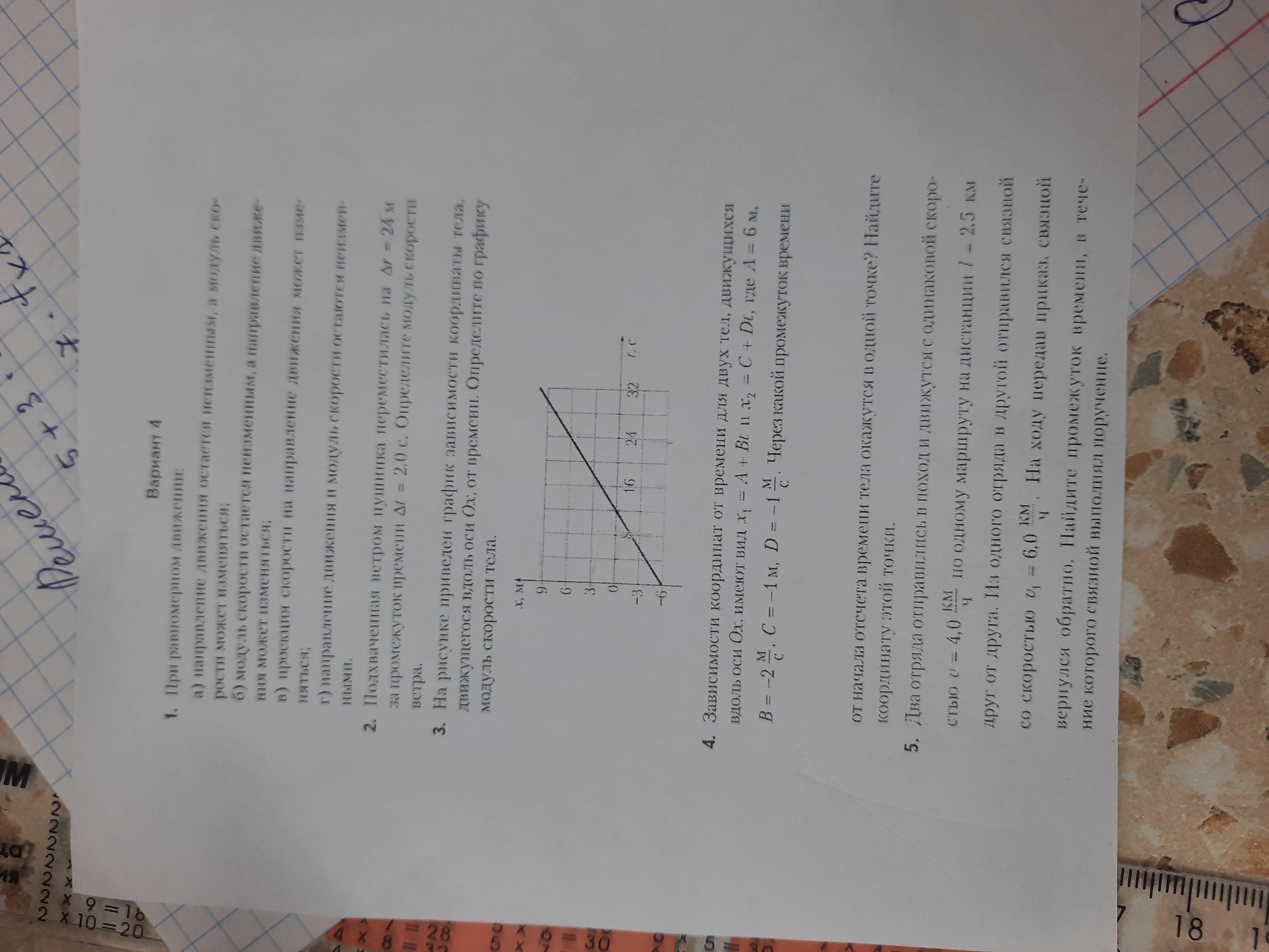 Нет ничего проще: Так как это график линейной функции, то он описывает равномерное прямолинейное движение (движение с постоянной по модулю скоростью). Для ее определения выберем на оси времени удобный промежуток времени (например, от 12 до 24 с) t=12 с.