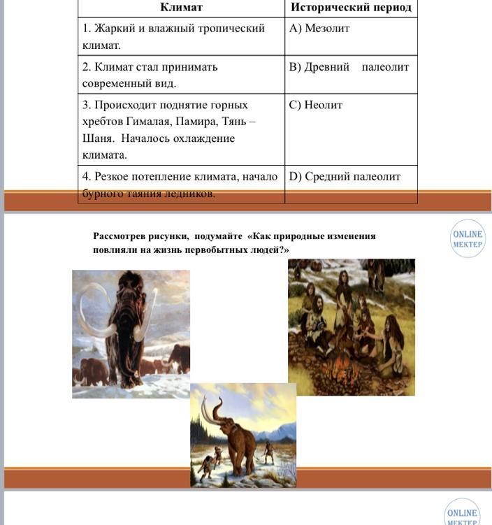 2 задание. Приведи в соответствие изменения климата с историческими периодами.
