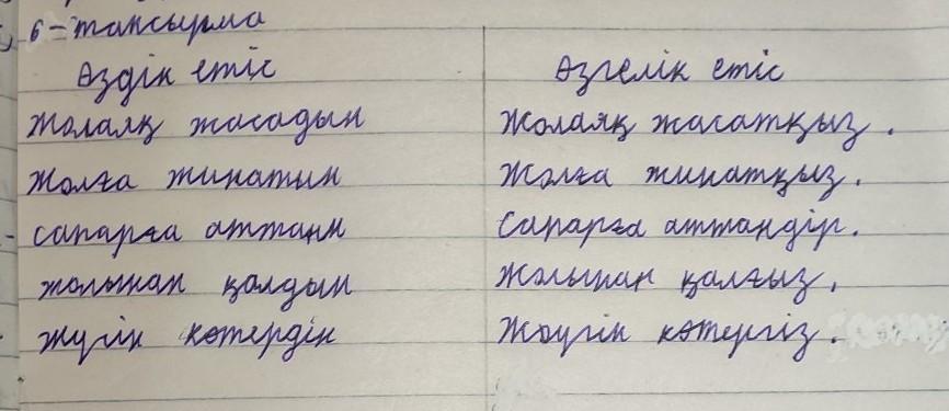 6-тапсырма. Төмендегі етістіктерді өздік, өзгелік етістерге айналдырып, сөйлемдер құраңдар. Бәрі бірдей өздік, өзгелік етіс түрінде жұмсала ма? Салыстырыңдар.