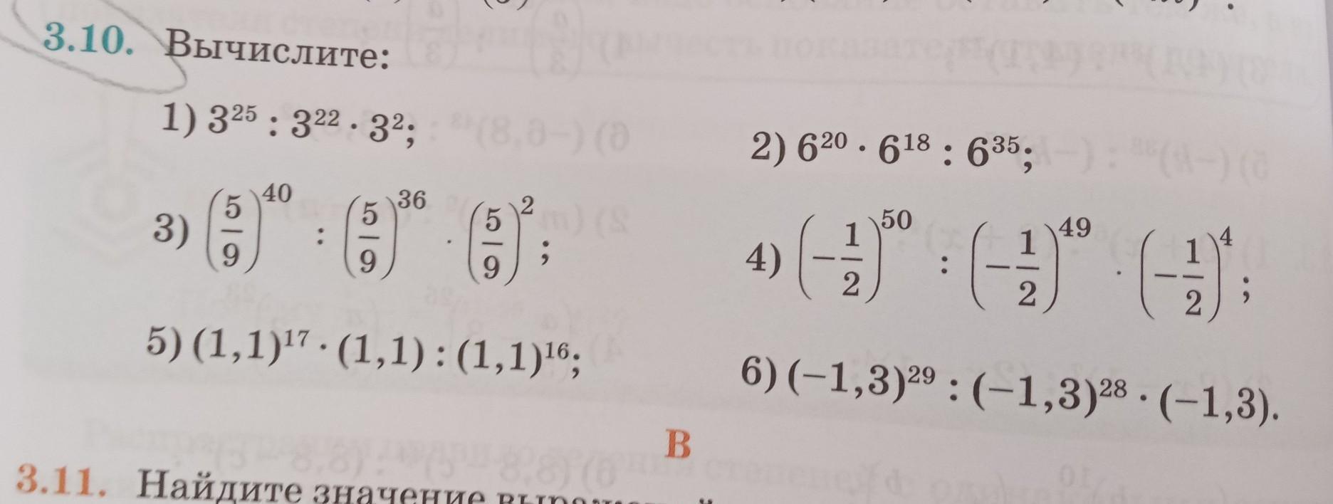 6) (-1,3)^29:(-1,3)^28*(-1,3)^1= (-1,3)^2