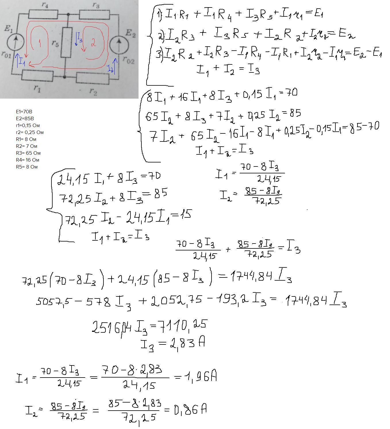 Для разветвленной электрической цепи, пользуясь законами Кирхгофа, определить токи во всех ветвях.