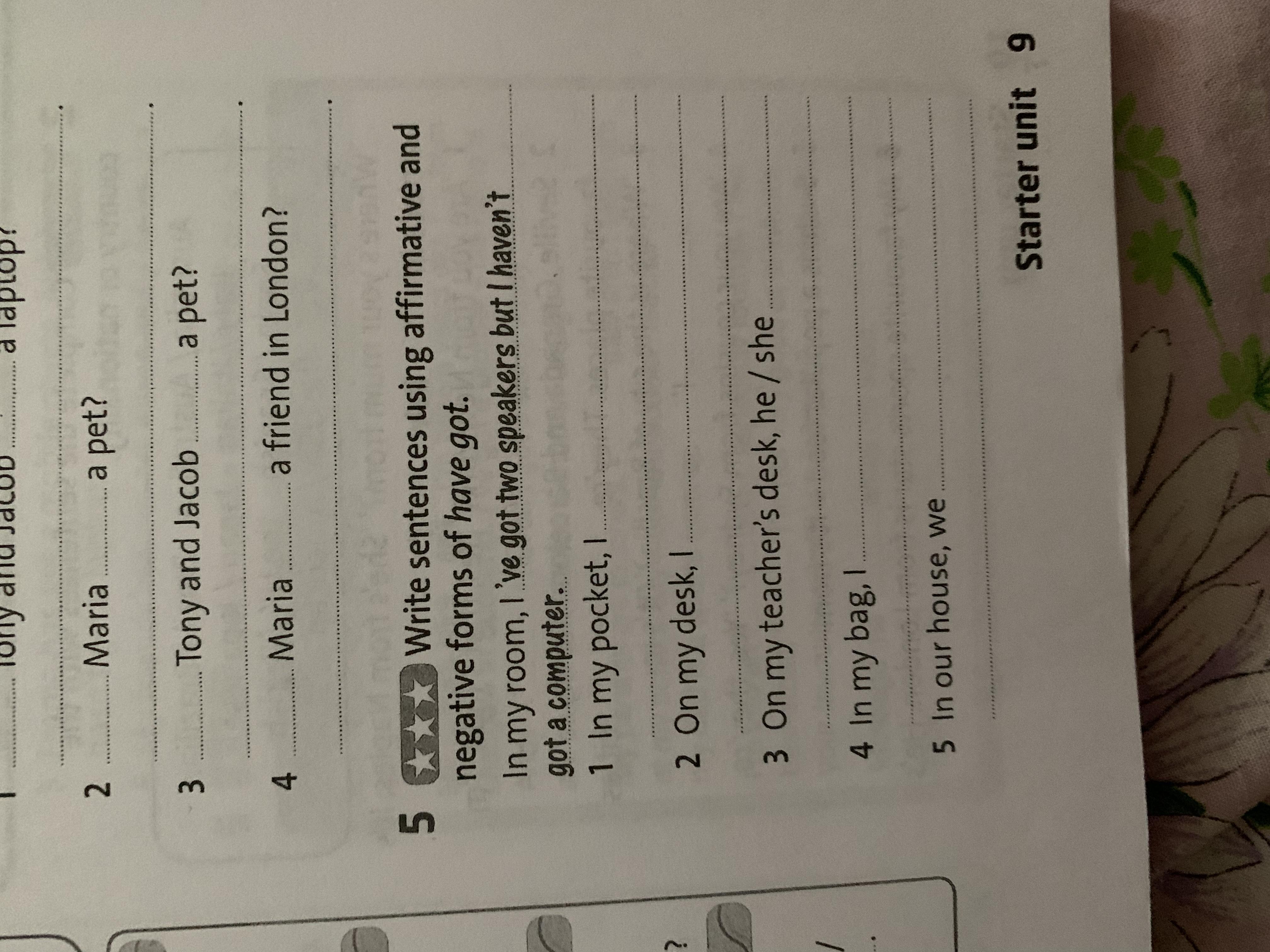 3 on my teacher's desk she's got a computer but she hasn't got a CD player