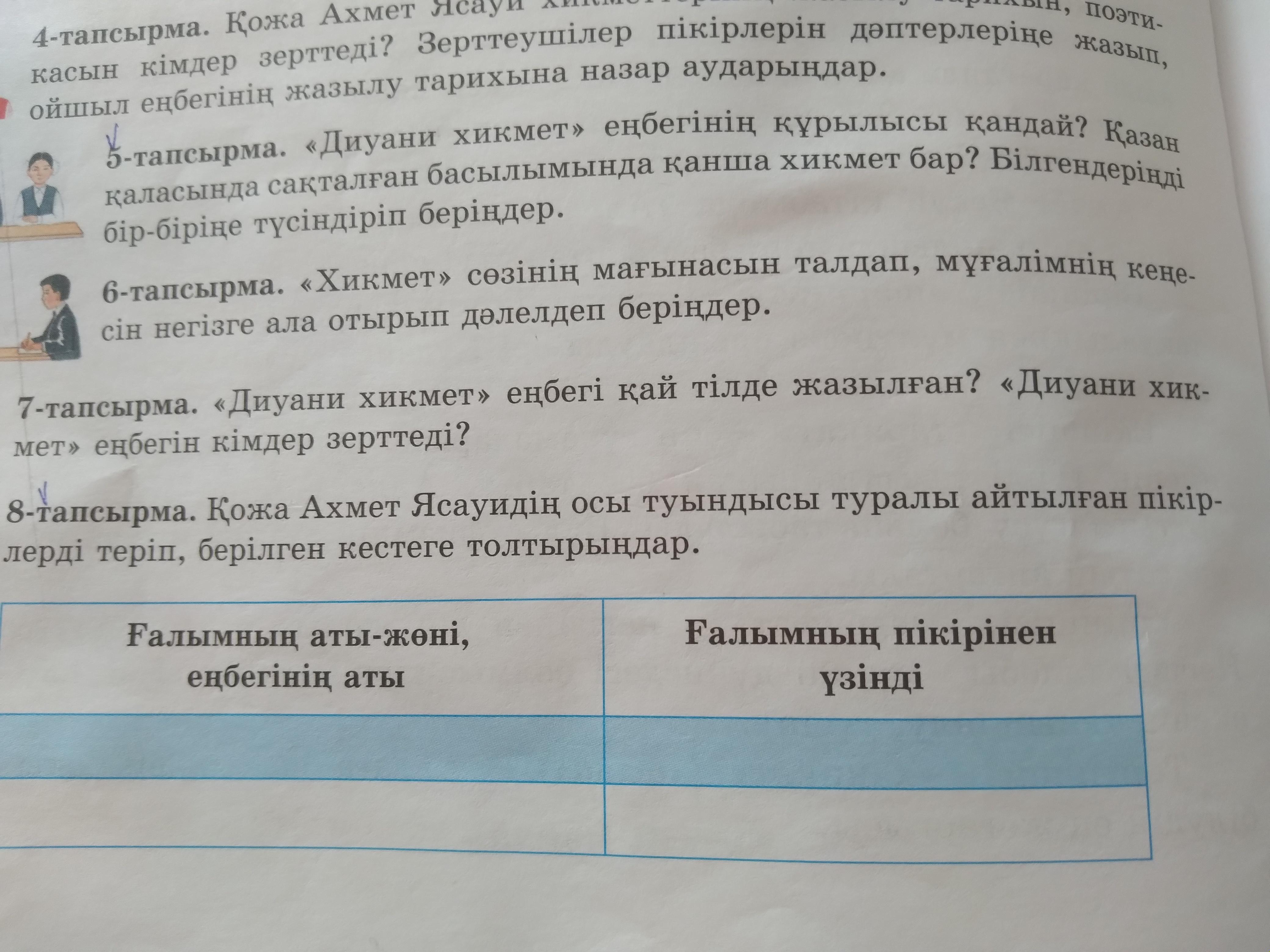 Қожа Ахмет Ясауидің осы туындысы туралы айтылған пікірлерді теріп, берілген кестеге толтырыңдар