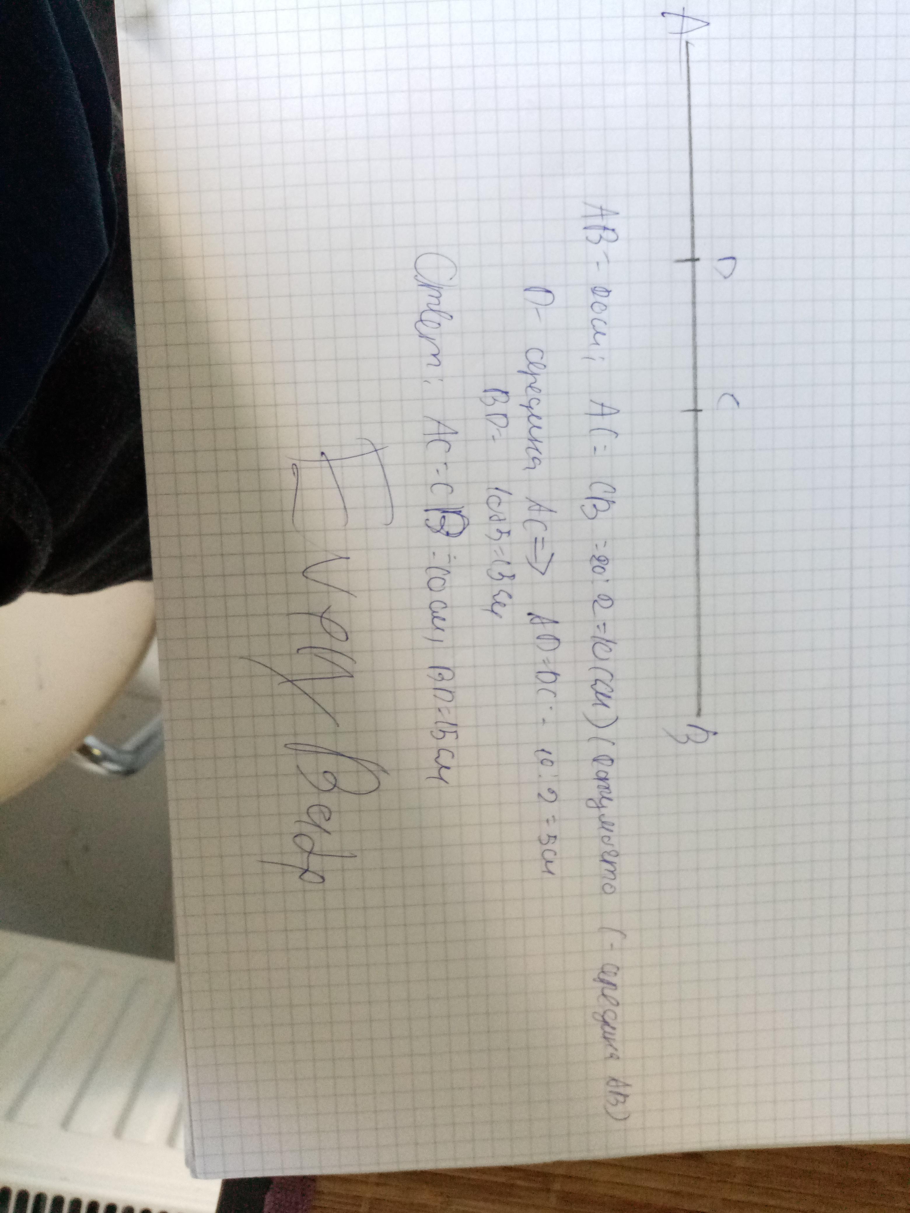 Точка С середина відрізка, точка D середина відрізка АС. Знайдіть АС, СВ, і DB, якщо АВ=20см.Помогите пожалуйста,срочно!!!