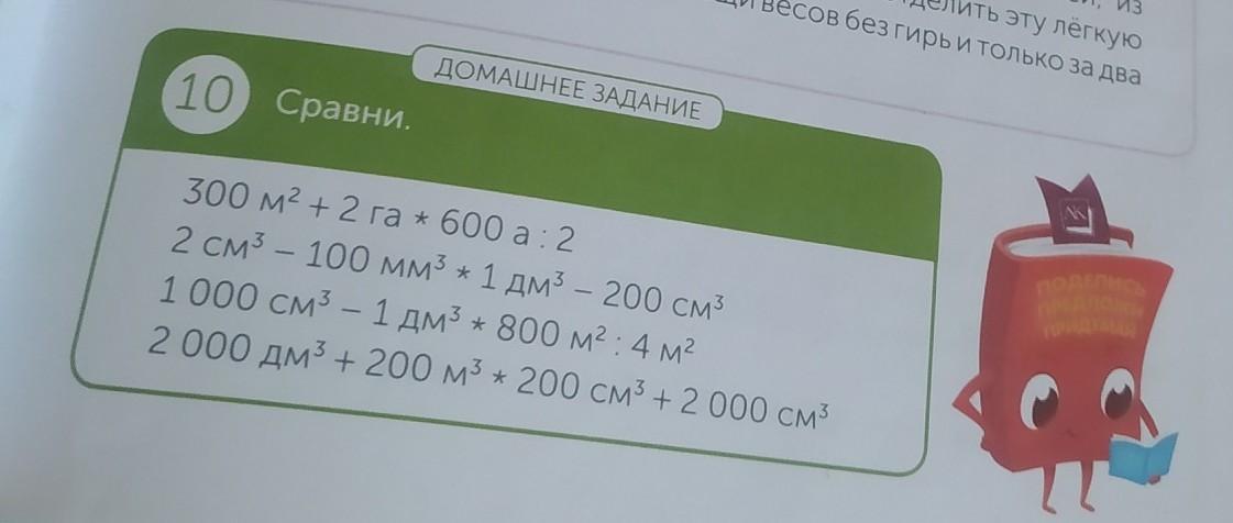 ДОМАШНЕЕ ЗАДАНИЕ 10) Сравни. 300 м2 + 2 га * 600 a 2 2 см - 100 мм * 1 дм3 - 200 см 1 000 см - 1 дм = 800 м2 4 м2 2 000 дм3 + 200 м3 + 200 см3 + 2 000 см