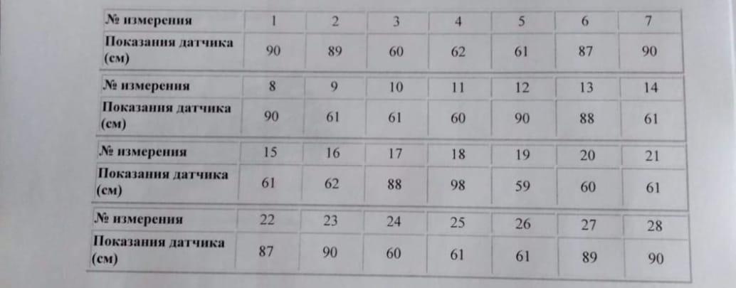 В зоне старта и финиша нет коробок. Все коробки гарантированно попадают в зону видимости ультразвукового датчика, Все коробки стоят так, что ультразвуковой датчик видит только одну их сторону. Определите, сколько коробок стояло вдоль стены во время пробной попытки