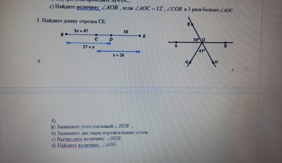 Поскольку ЕОА и АОН являются смежными углами, то сумма их градусных величин равна 180. Отсюда найдем угол АОН=180-70=110. Отрезок OG делит угол АОН на два угла: GOH=41 и GOA=х. Отсюда GOA=110-41=69