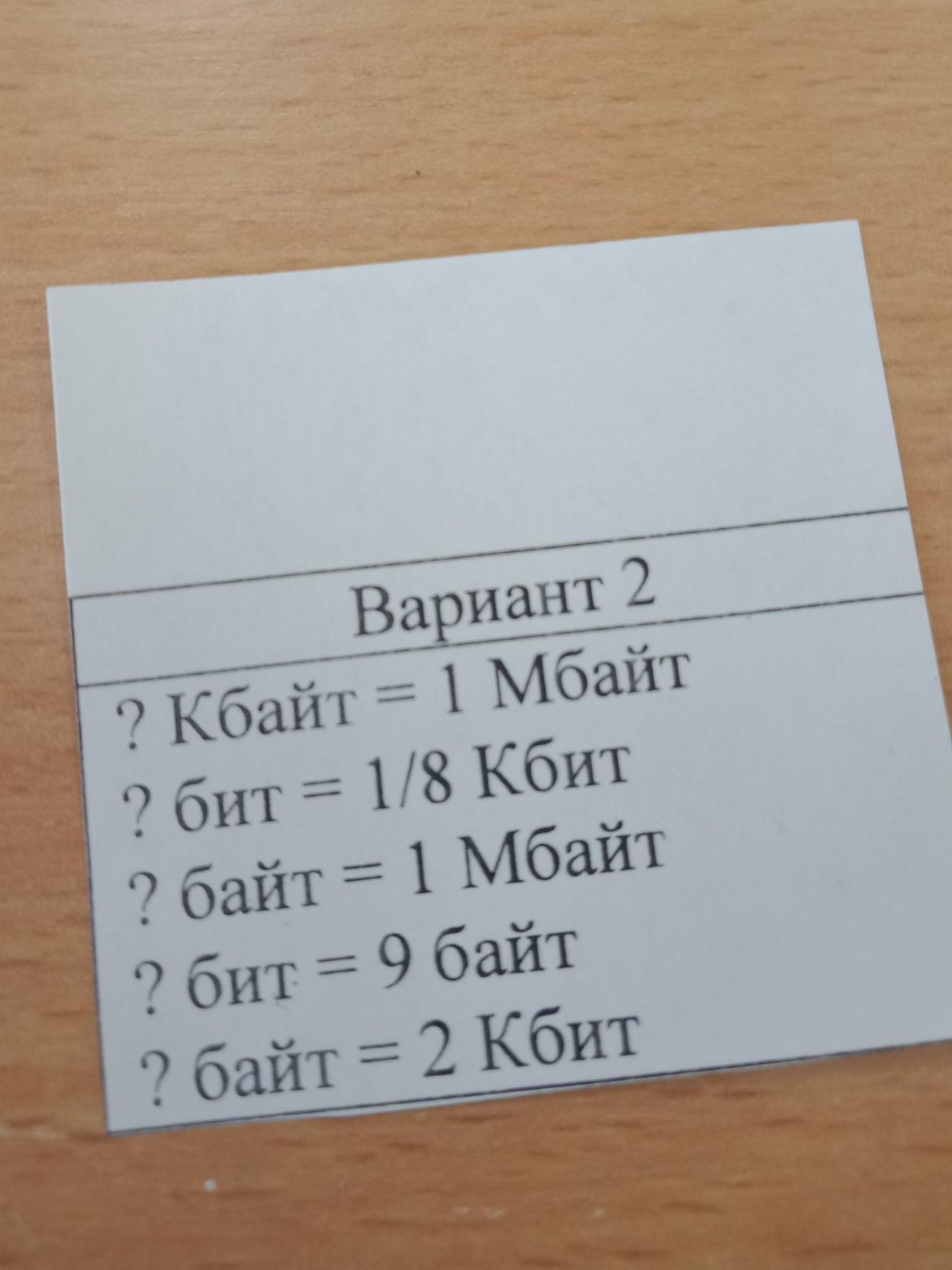 Вариант 2 ? Кбайт = 1 Мбайт ? бит = 1/8 Кбит 2 байт = 1 Мбайт 2 бит = 9 байт байт = 2 Кбит