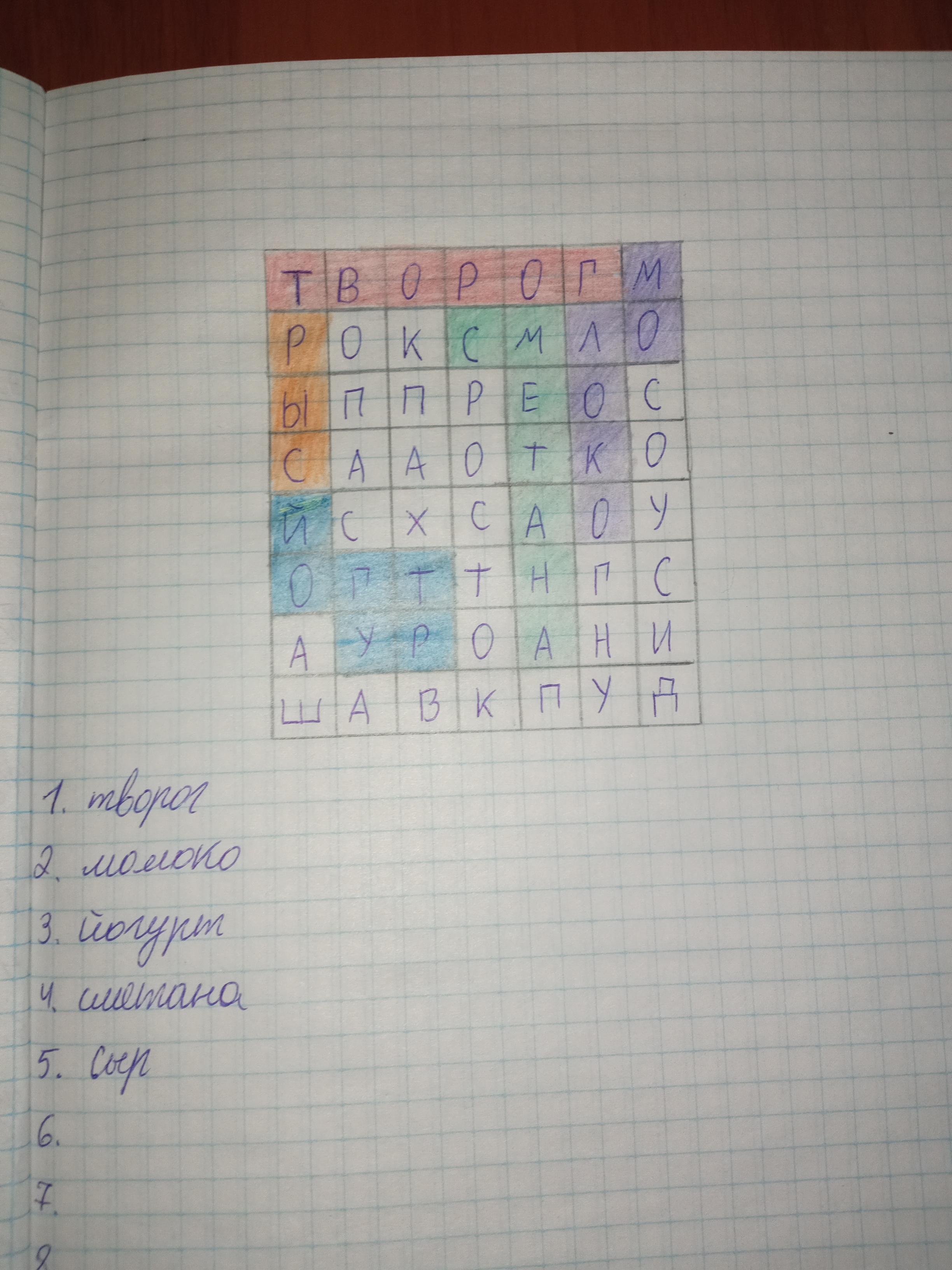 Там с низу с права ПУДИНГ; справа СОУС(если что молочный соус существует); около сметаны видишь буква П а теперь соединяй ПРОСТАКВАША