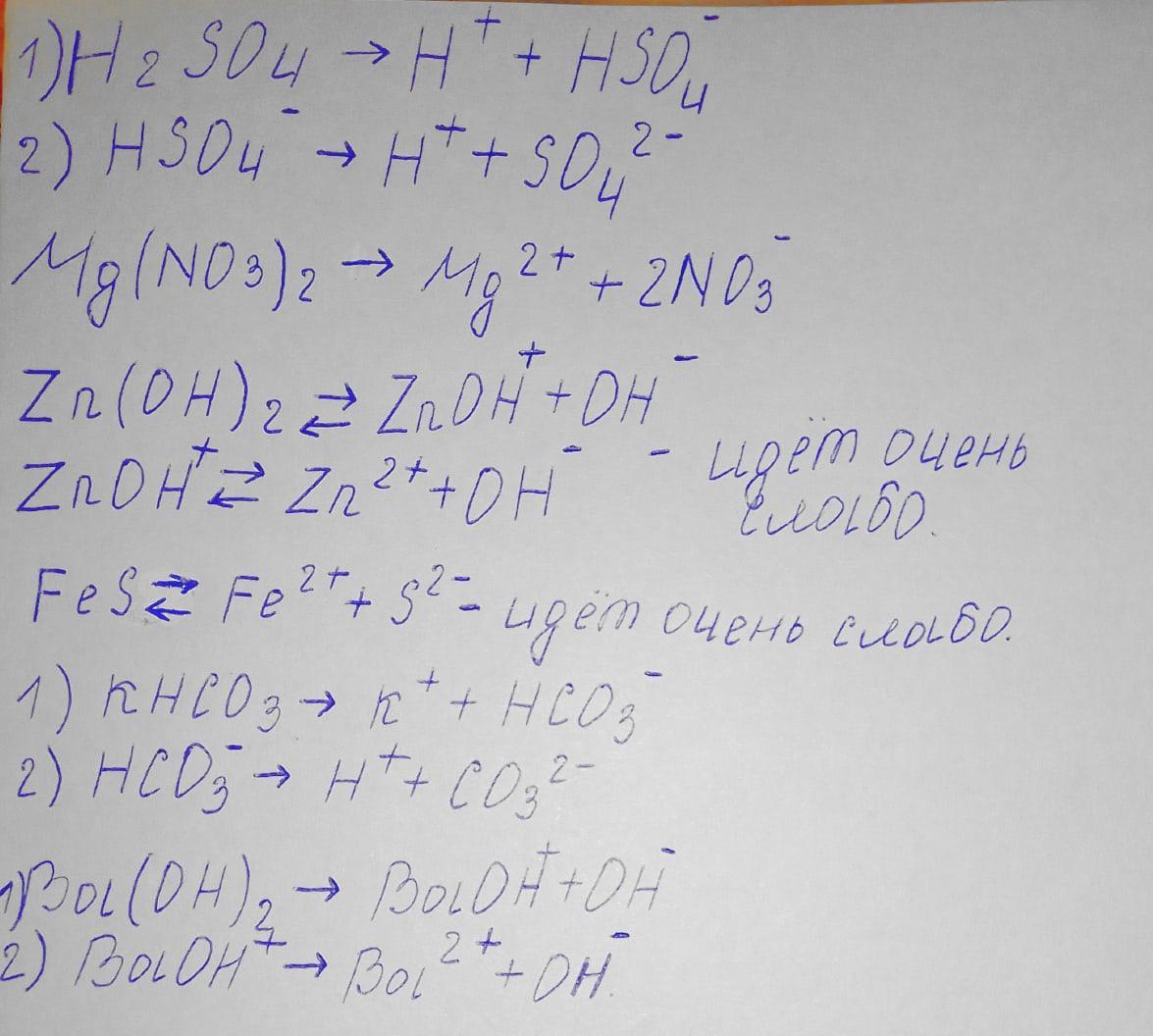 1. Составьте уравнения возможных процессов диссоциации предложенных соединений.