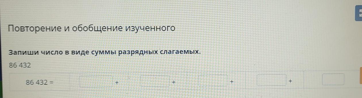 86 432= 80 000+ 6000+ 400+ 30+ 4