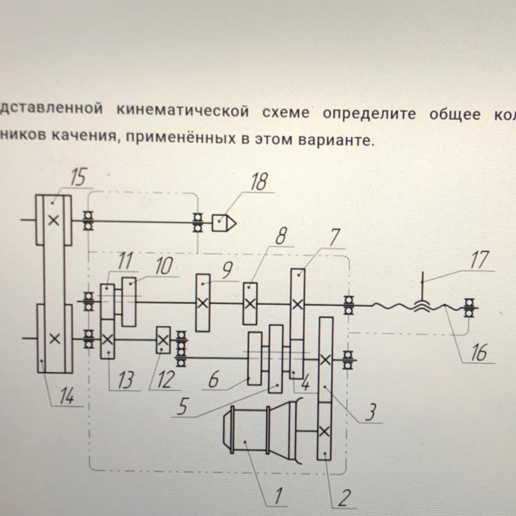 помогите пожалуйста. По представленной кинематической схеме определите общее количество подшипников качения, применённых в этом варианте.