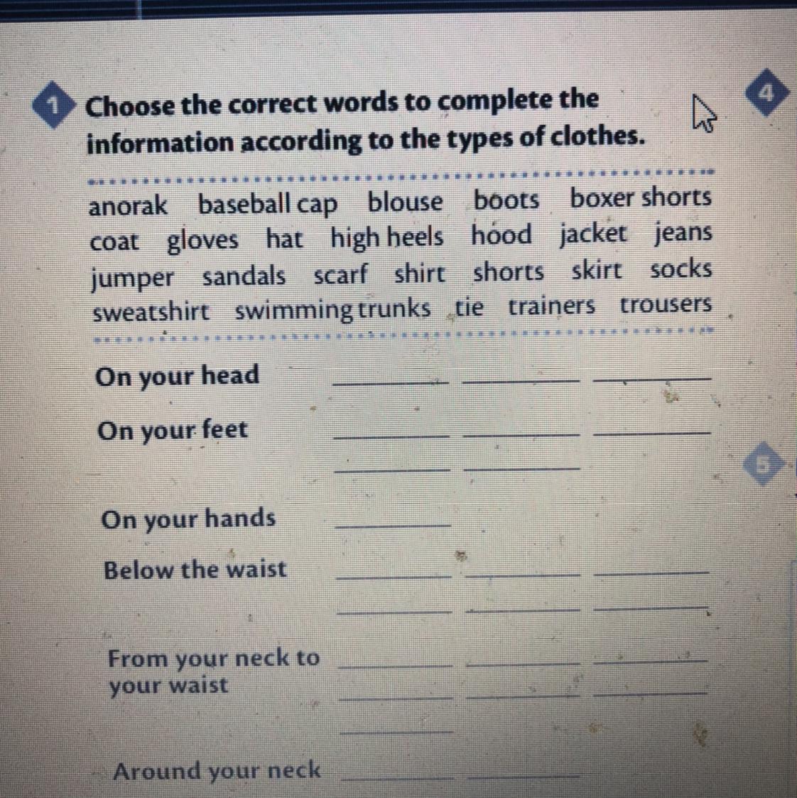 From your neck to yor waist- anorak, blouse, coat, jacket, jumper, shirt, sweatshirt.