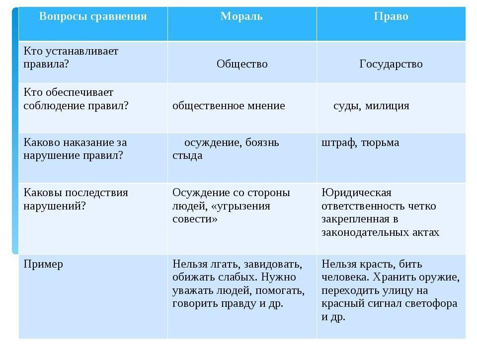 ТАБЛИЦА МОРАЛЬ И ПРАВО СРОЧНО!!! ДАЮ 40 БАЛЛОВ