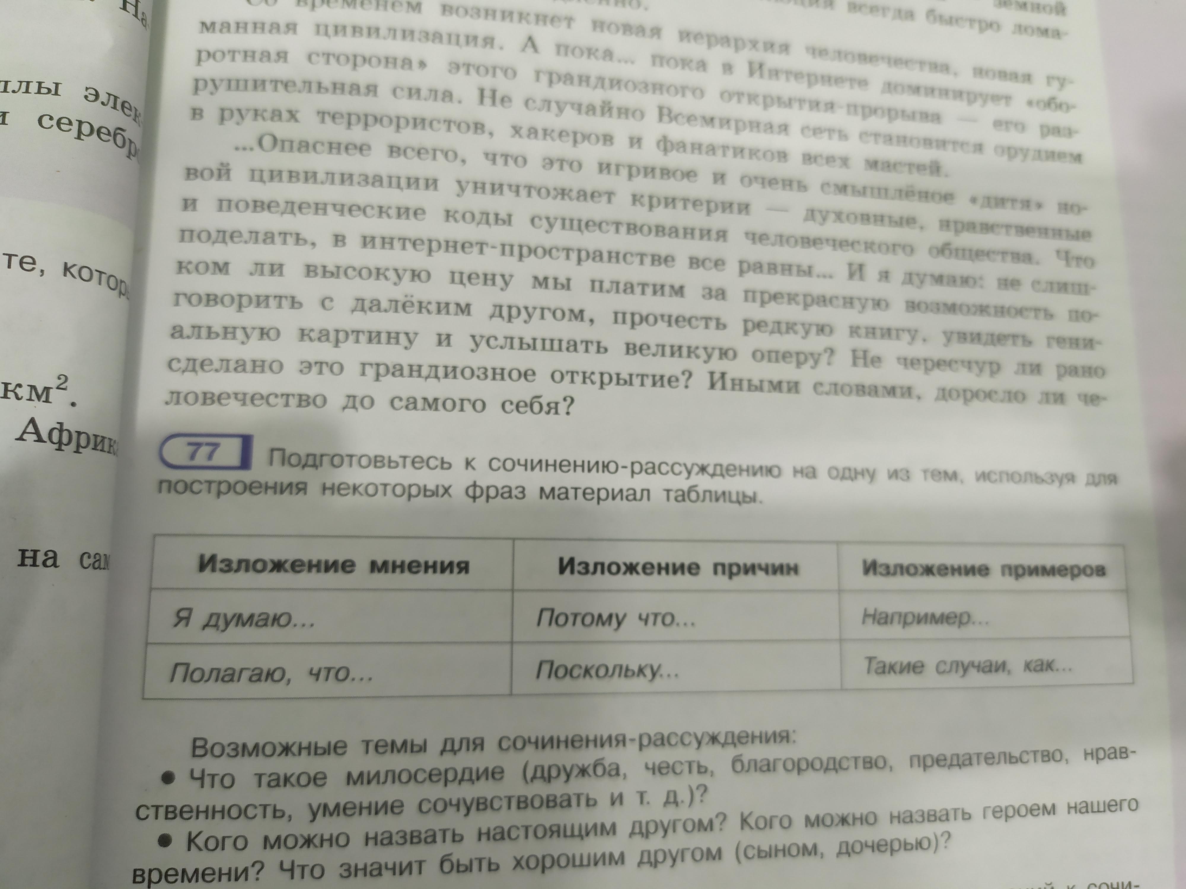 подготовьтесь к сочинение рассуждение на одну из тем используя для построения некоторых фраз материал таблицы