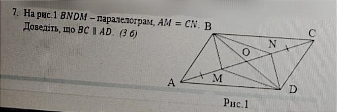 ⇒ ∠BCN = ∠MAD (соотв. эл-ты равных Δ) -- накрест лежащие углы при прямых BC и AD и секущей AC ⇒ BC || AD (по признаку параллельных прямых)