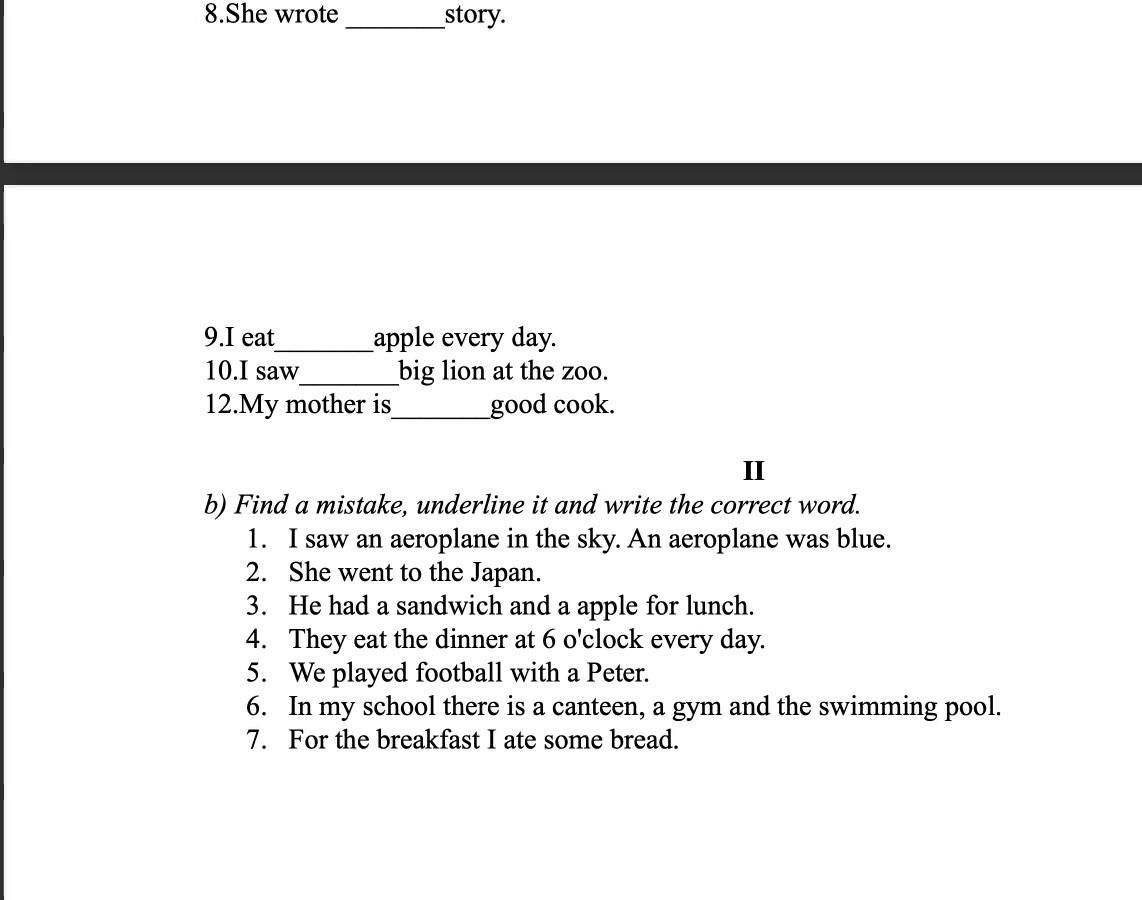 3) не "a apple", a "an apple"