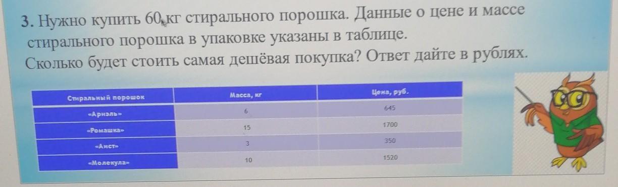 1)(60:6)*645=6450(руб)-ариэль.