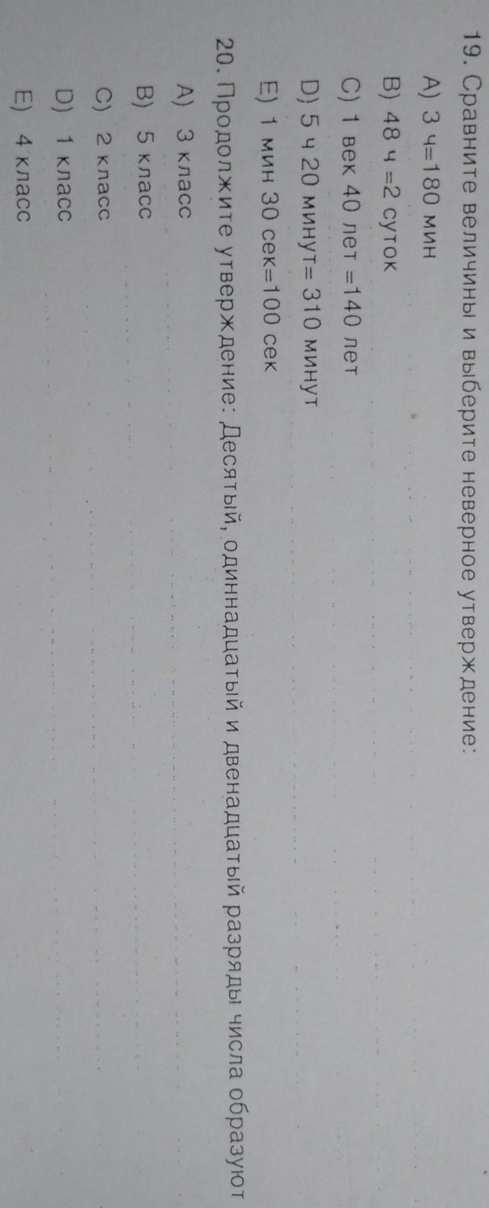 20 . Десятий , одинадцятий і дванадцятий розряди числа утворюють Е) 4 клас .