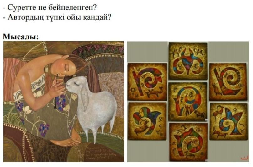 -Суретте ойлармен , аспап бейнеленген.Сонымен қатар бірінші суретте көріп отсаңыз қыз бен қой салынған.