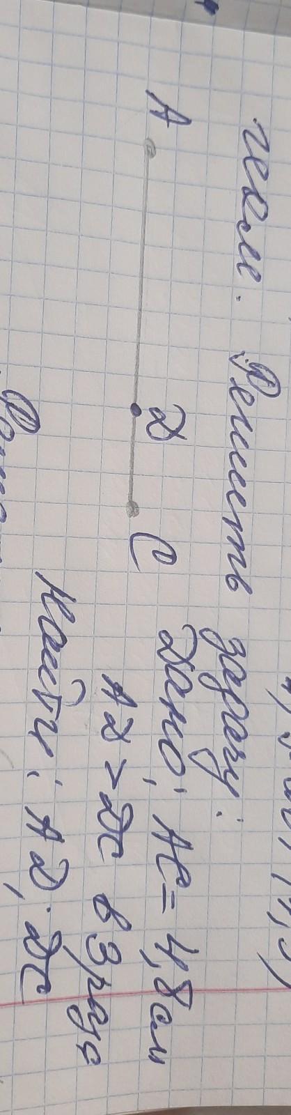 AD=3x, dc=x, AC=4,8 см, тогда складываем уравнение:3x+x=4,8