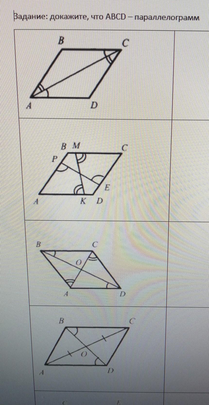 3) Две пары накрест лежащих углов дают две пары параллельных прямых, поэтому ABCD - параллелограмм по определению (коротко, но должно быть понятно)