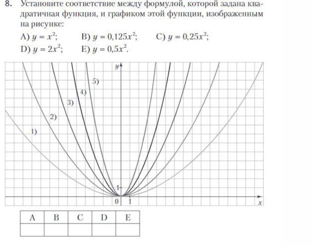 Строим график каждого уравнения и соотносим с графиками на листе и вписываем в табл. букву уравнения и подходящий график.