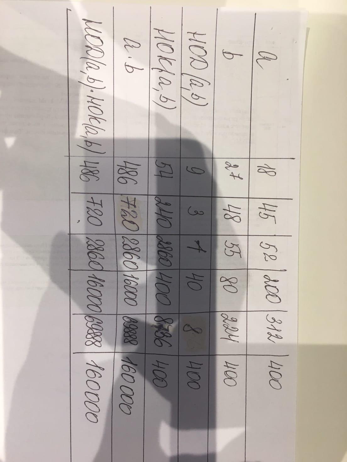 Вывод: произведение двух чисел равно произведению их наименьшего общего кратного и наибольшего общего делителя.