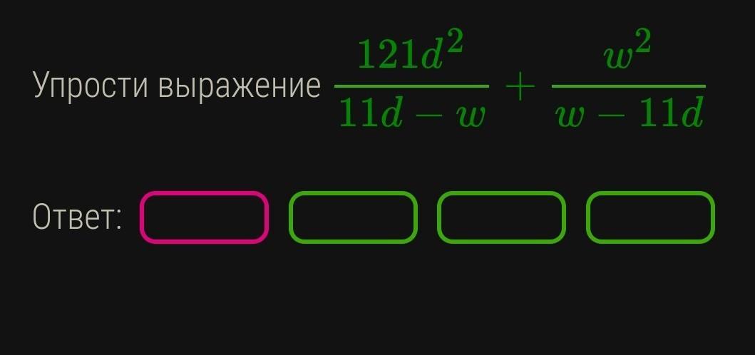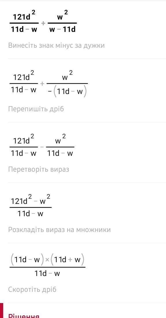 =121d^2 /(11d-w) - w^2 /(11d-w) =(121d^2-w^2) /(11d-w) = (11d-w)(11d+w) /(11d-w) =